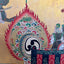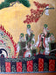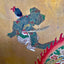 Peinture sur papier, pigments minéraux et feuille d’or, montée en paravent à 6 feuilles. Bordures en brocard de soie et bois laqué, ferrures de protection en laiton gravé.