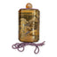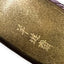 L’intérieur de l’inro est entièrement en laque nashiji, technique consistant à saupoudrer des particules d’or sur fond laqué, évoquant l’éclat de la poire. Le cordon est monté d’un ojime en verre soufflé couleur ambre, dont la transparence douce répond à la chaleur des ors.