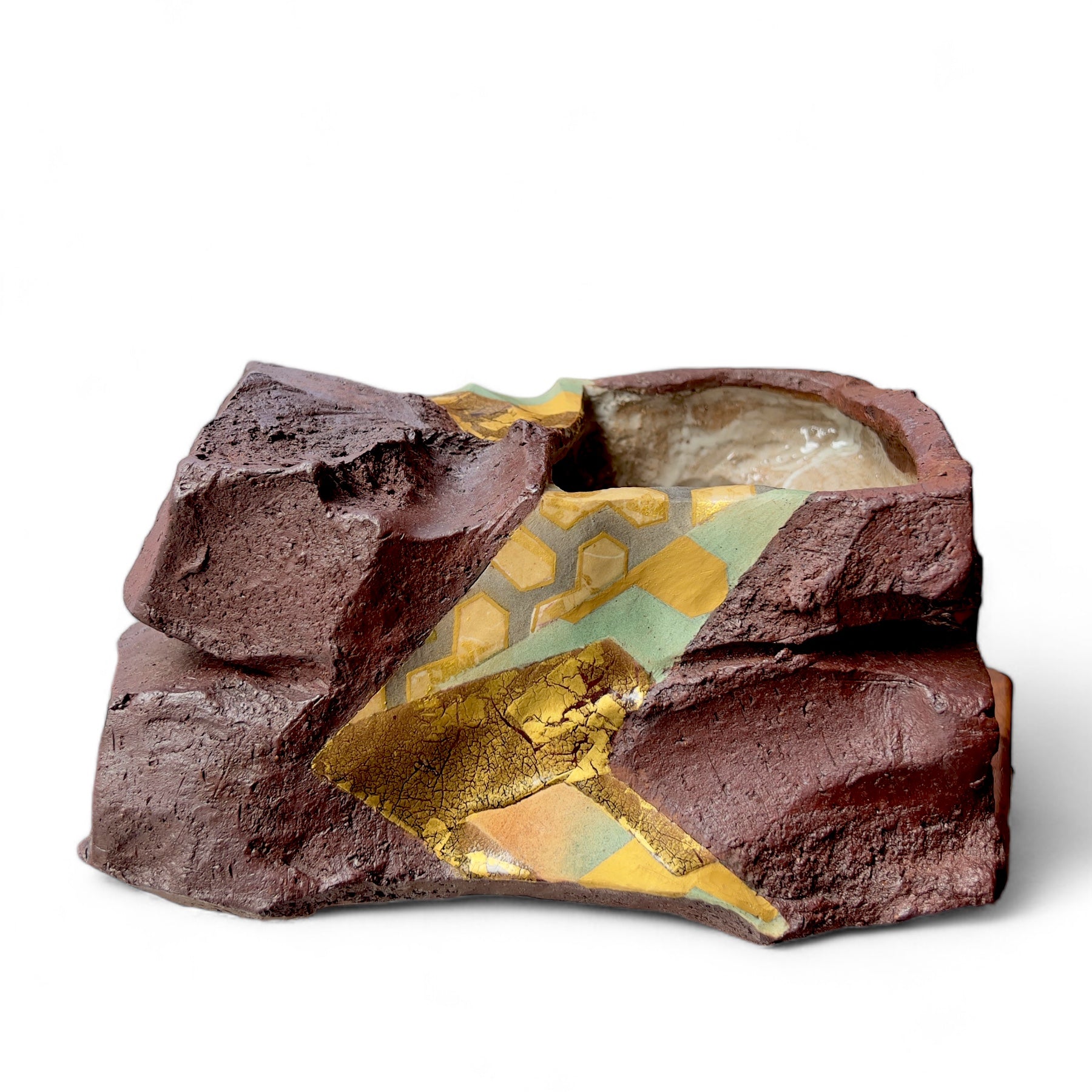 La complexité de la forme et la richesse des textures de cette pièce mettent en évidence l’habileté de l’artiste à fusionner les influences historiques avec une vision artistique personnelle, caractérisant ainsi l’essence de l’art céramique japonais contemporain qu’il fait évoluer au fils des ans.